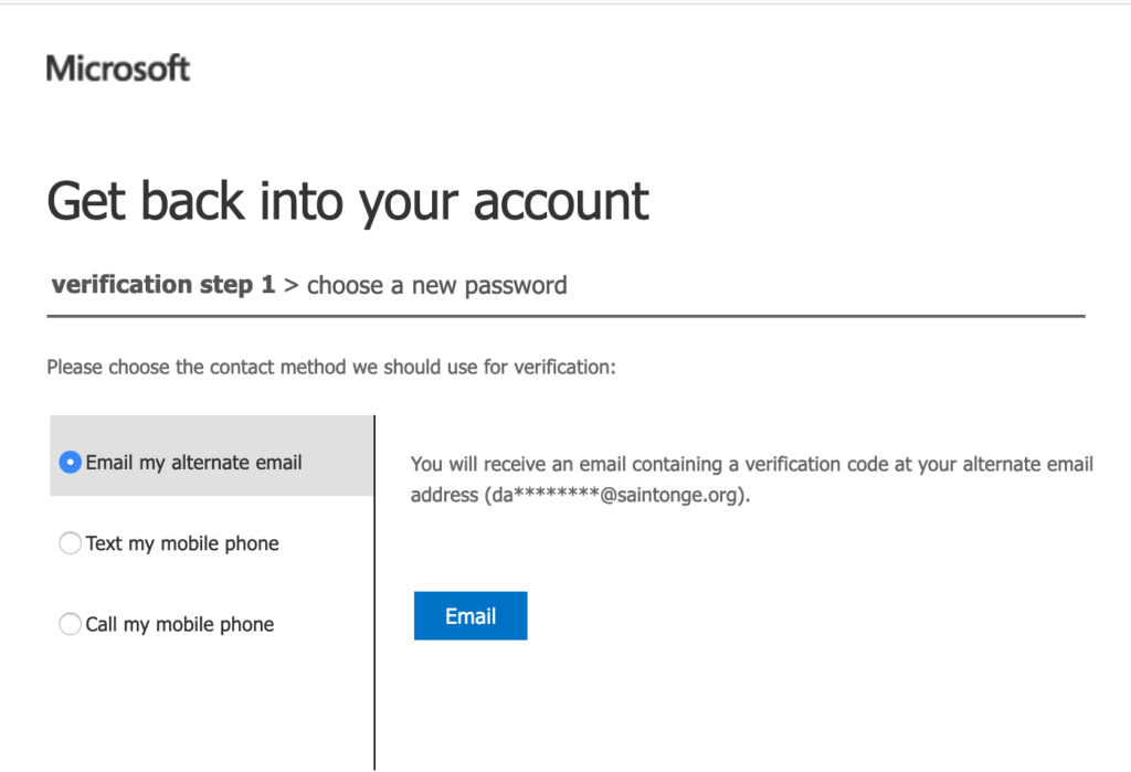 • Select “Email my alternate email” to have a passcode emailed.